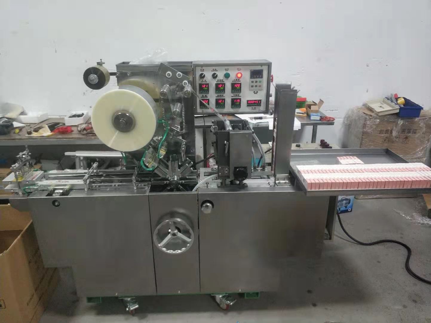 适用于化妆品、保健品等以及相类似物品的外盒透明膜包装。该包装机是采用环保型OPP或BOPP薄膜